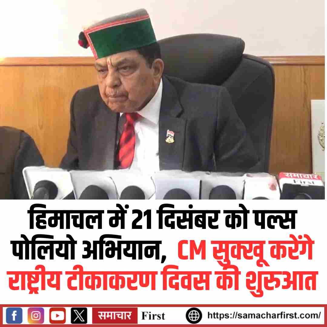 हिमाचल प्रदेश को पोलियो मुक्त बनाए रखने के उद्देश्य से प्रदेश में 21 दिसंबर को राष्ट्रीय टीकाकरण दिवस (NID) के तहत सघन पल्स पोलियो टीकाकरण अभियान (IPPI) आयोजित किया जाएगा। अभियान की औपचारिक शुरुआत केएनएच अस्पताल शिमला में मुख्यमंत्री सुखविंदर सिंह सुक्खू बच्चों को पोलियो की खुराक देकर करेंगे।