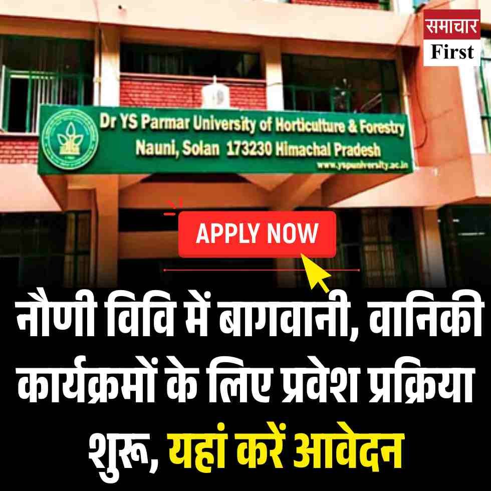 Nauni University admissions 2025: डॉ. यशवंत सिंह परमार औद्यानिकी और वानिकी विश्वविद्यालय, नौणी ने शैक्षणिक सत्र 2025-26 के लिए प्रवेश प्रक्रिया शुरू कर दी है। बागवानी, वानिकी, जैव प्रौद्योगिकी, प्राकृतिक खेती, खाद्य प्रौद्योगिकी और कृषि-व्यवसाय जैसे विविध क्षेत्रों में उच्च शिक्षा प्राप्त करने के इच्छुक विद्यार्थियों के लिए यह सुनहरा अवसर है।