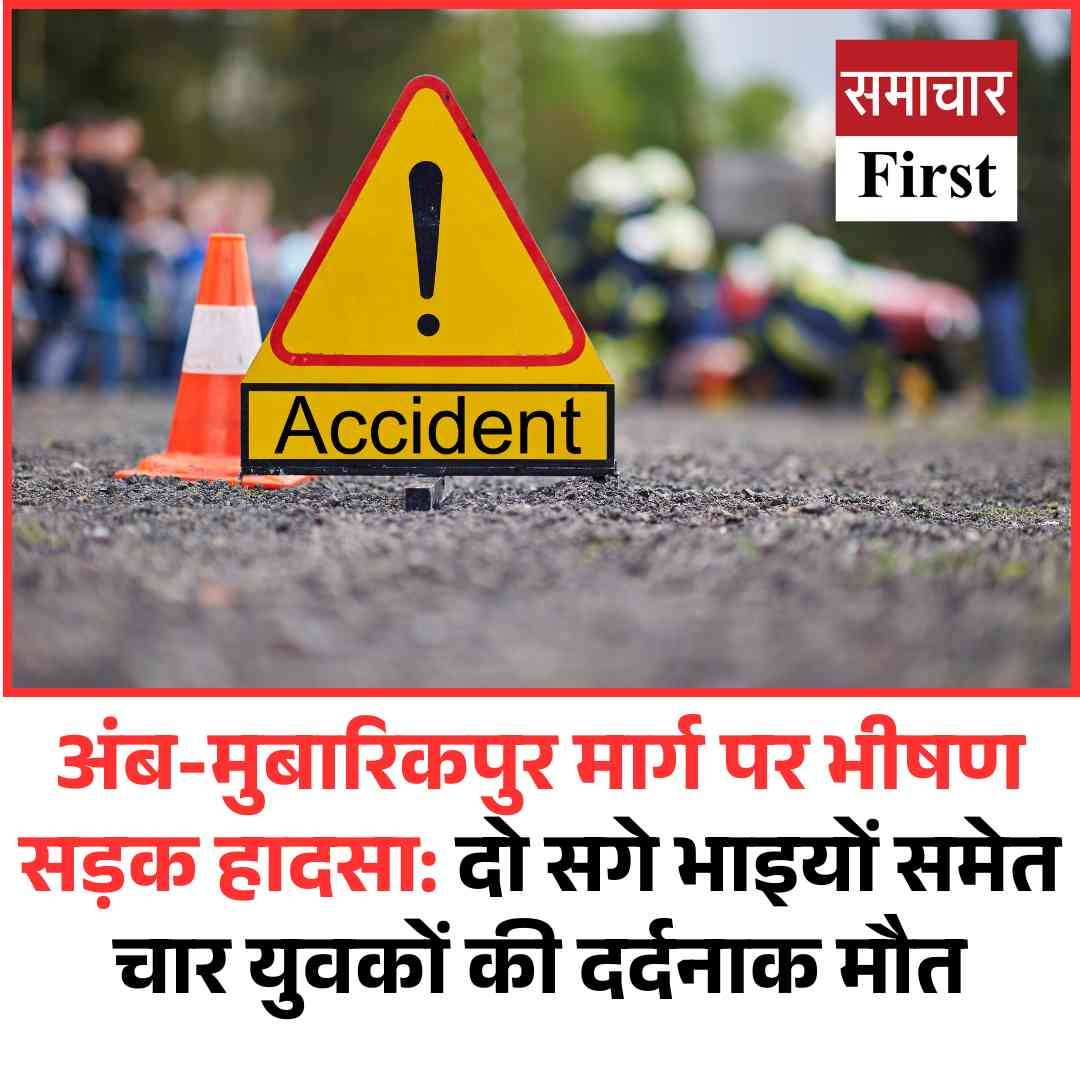 अंब-मुबारिकपुर मार्ग पर कलरूही पुल के पास दो बाइकों की सीधी टक्कर में दो सगे भाइयों समेत चार युवकों की मौत हो गई, जबकि एक युवक गंभीर रूप से घायल है। ये सभी युवक माता चिंतपूर्णी महोत्सव और माता बगलामुखी मंदिर से लौट रहे थे।