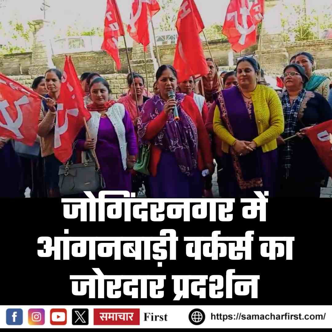 जोगिंदरनगर में आंगनबाड़ी वर्कर्स का जोरदार प्रदर्शन