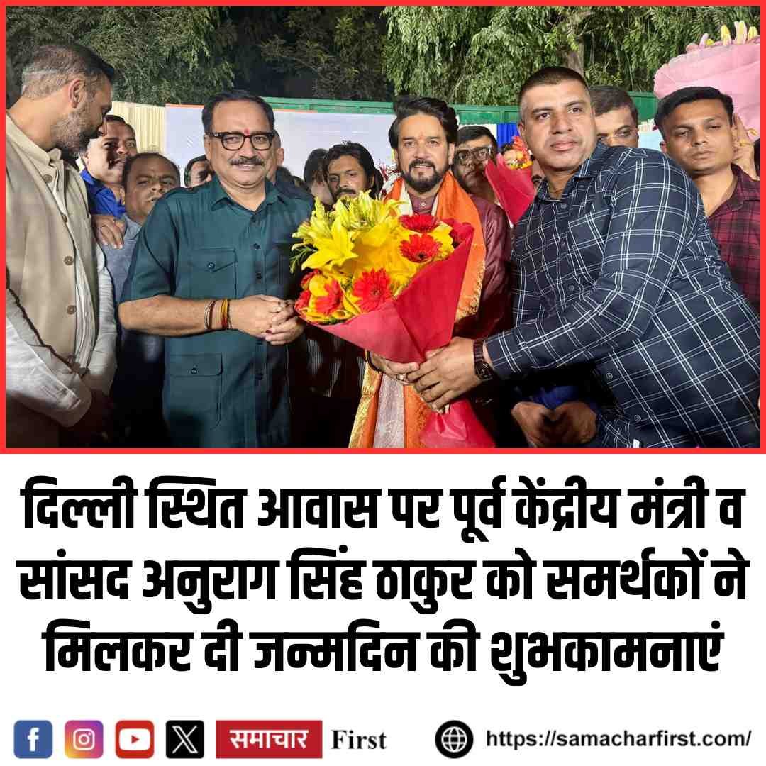 दिल्ली/हिमाचल प्रदेश, 24 अक्तूबर। पूर्व केंद्रीय मंत्री, हमीरपुर लोकसभा सांसद एवं हिमाचल ओलंपिक संघ के अध्यक्ष अनुराग सिंह ठाकुर के जन्मदिन के अवसर पर उनके दिल्ली स्थित आवास पर आज सैकड़ों समर्थक, पत्रकार, पार्टी पदाधिकारी, जनप्रतिनिधि तथा शुभचिंतक एकत्र हुए और उन्हें जन्मदिन की शुभकामनाएँ दीं।