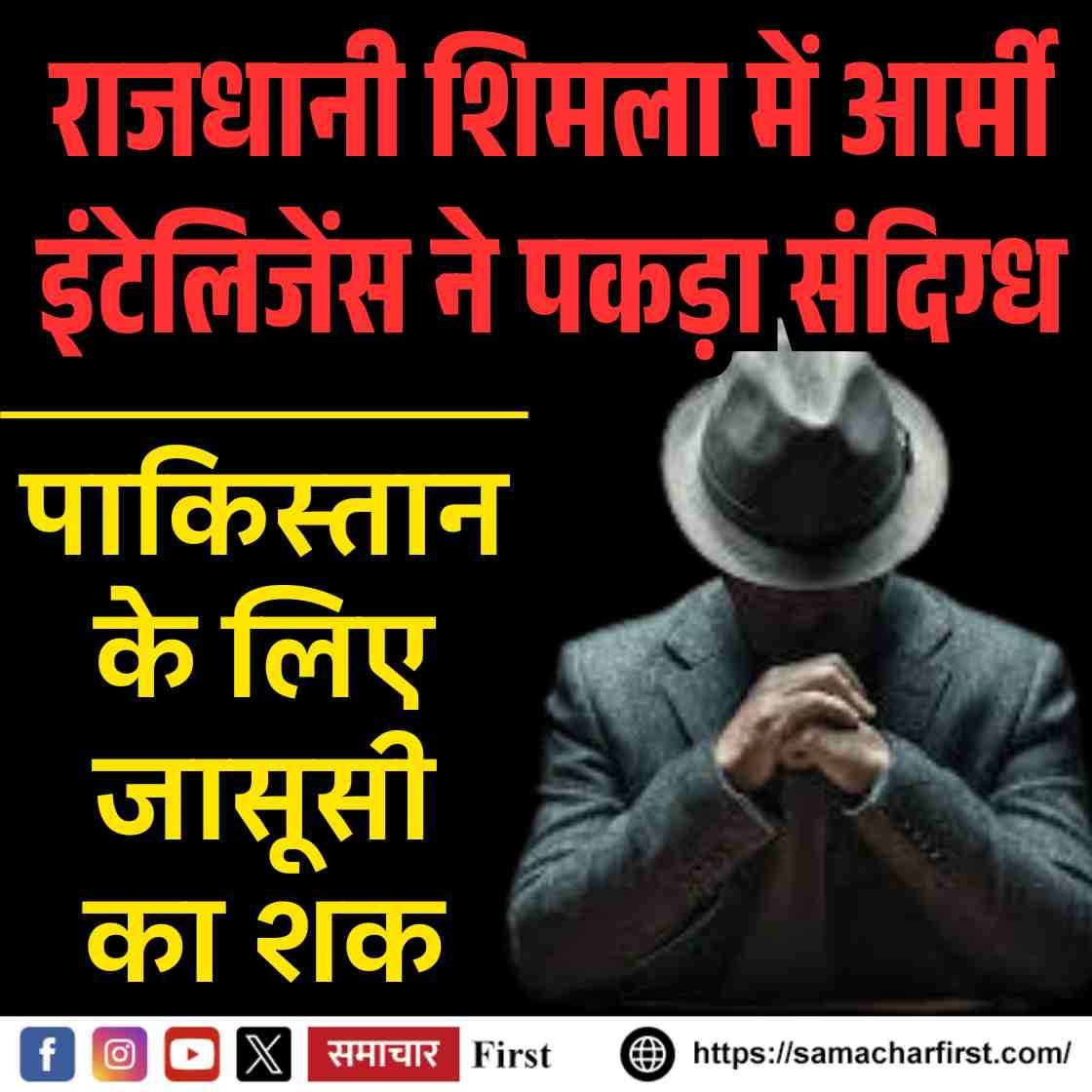 शिमला में आर्मी इंटेलिजेंस ने पकड़ा संदिग्‍ध, पाकिस्‍तान के लिए जासूसी का शक
