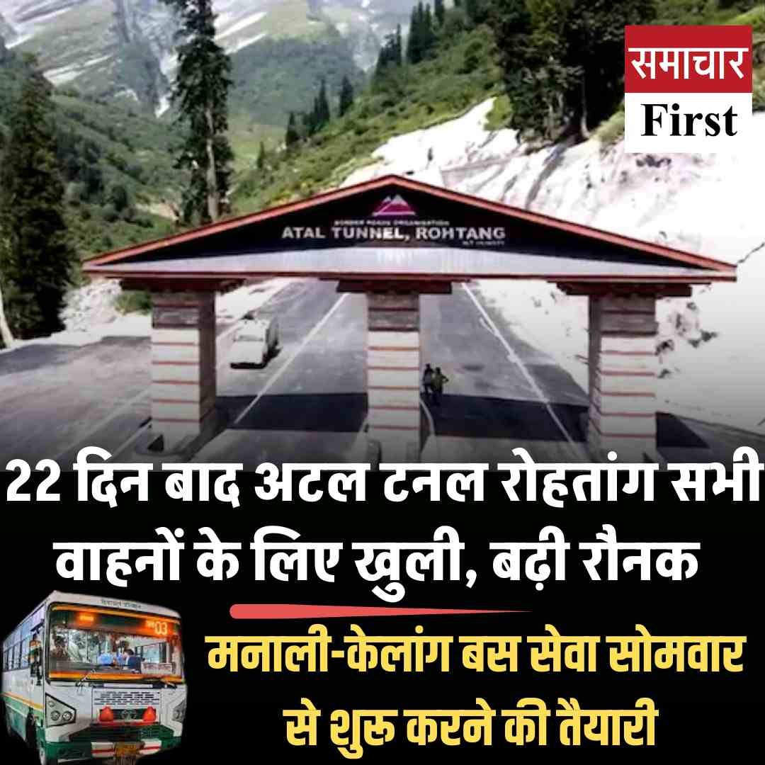 22 दिन बाद अटल टनल रोहतांग सभी वाहनों के लिए खुली, बढ़ी रौनक ; मनाली-केलांग बस सेवा सोमवार से शुरू करने की तैयारी
