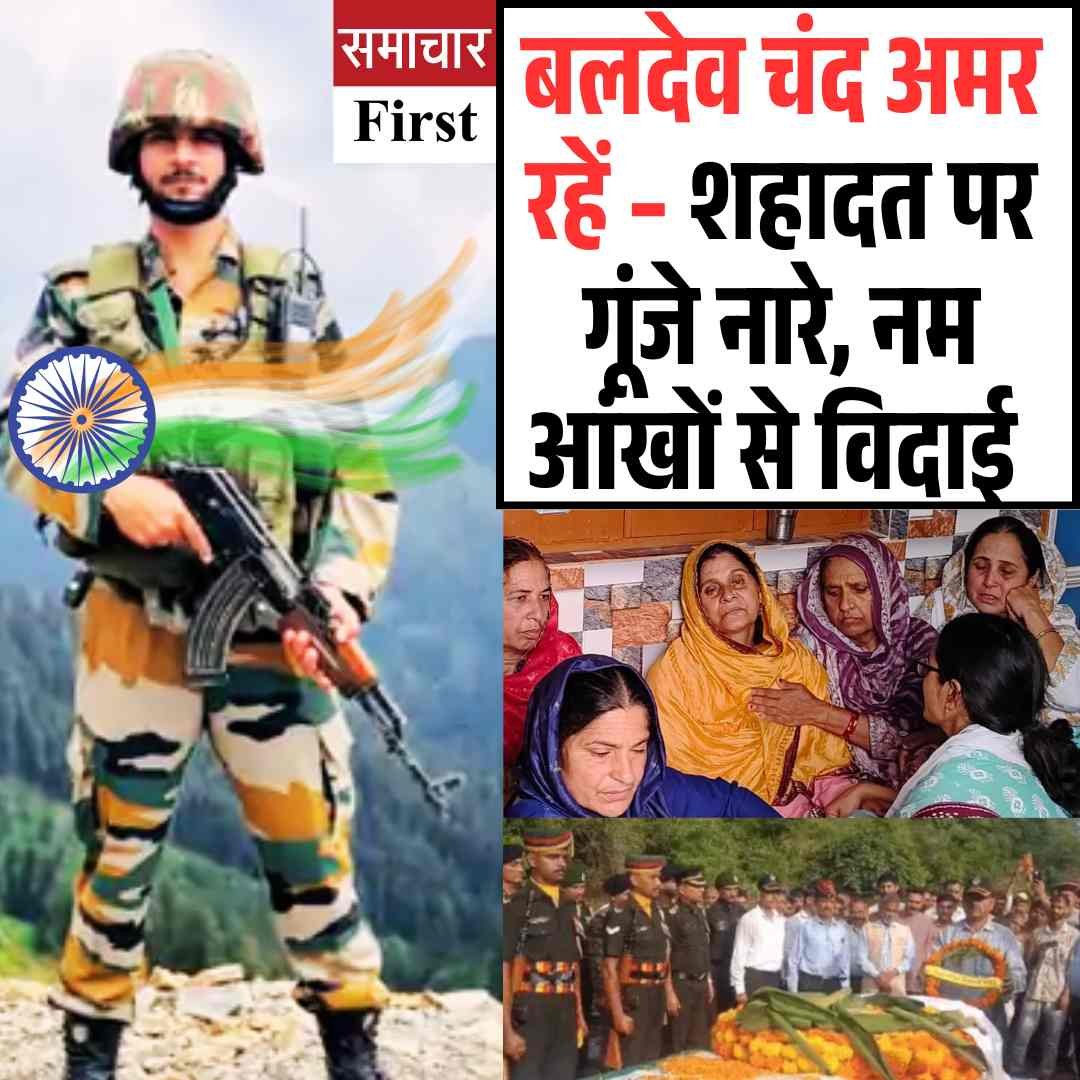 रविवार को उनका पार्थिव शरीर पैतृक गांव थेह पहुंचा। गांव में हर तरफ भारत माता की जय और बलदेव चंद अमर रहे के नारे गूंज उठे। अंतिम यात्रा के दौरान हजारों लोग मौजूद रहे। शहीद को सैन्य सम्मान के साथ अंतिम विदाई दी गई। उनके साथियों ने उनकी याद में बाइक पर तिरंगा रैली भी निकाली।