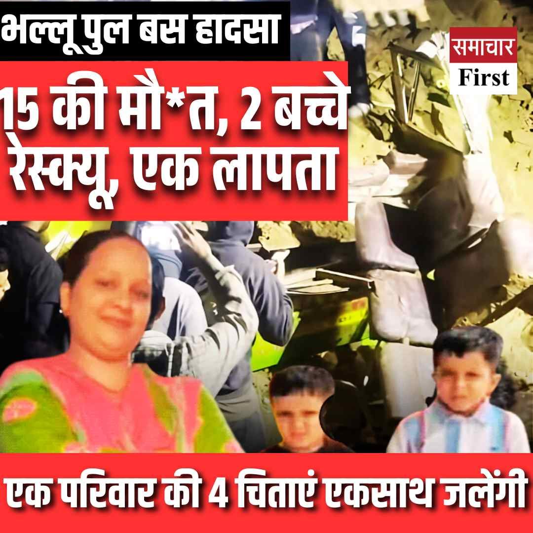 हिमाचल प्रदेश के बिलासपुर में आज (8 अक्टूबर) एक घर से 4 अर्थियां एक साथ उठेगी। बस हादसे में एक ही परिवार के 2 बच्चों समेत चार लोगों की मौत हो गई। मरने वालों में दो सगे भाई और देवरानी-जेठानी शामिल है, जबकि इसी परिवार के दो बच्चे गंभीर रूप से घायल है। इन दोनों को बरठी अस्पताल से एम्स बिलासपुर रेफर किया गया है।