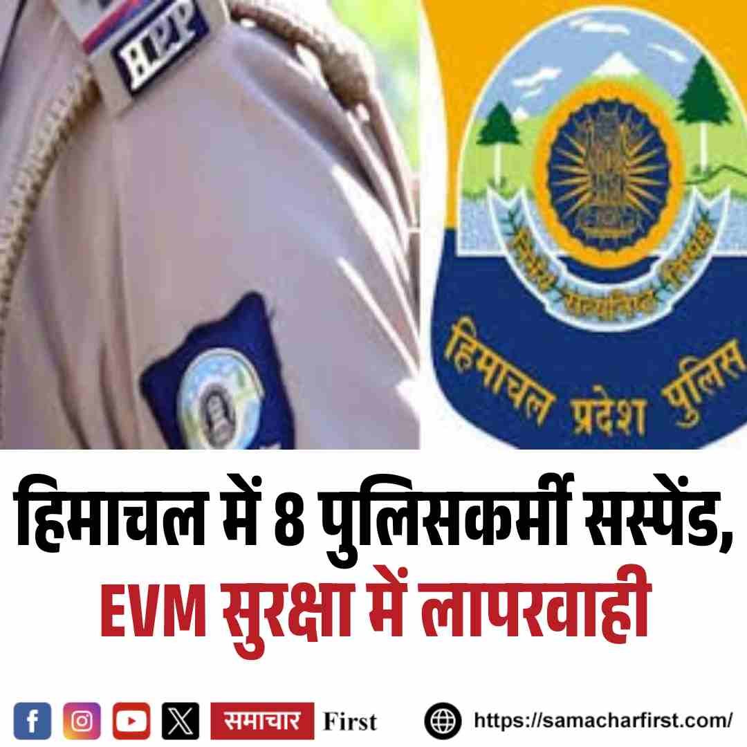 हिमाचल प्रदेश के बिलासपुर जिले में EVM सुरक्षा में लापरवाही बरतने पर 8 पुलिस कर्मियों को सस्पेंड कर दिया गया है। कार्रवाई के बाद इन्हें लाइन हाजिर कर दिया गया है। मामले की पुष्टि एसपी बिलासपुर संदीप धवल ने की है।