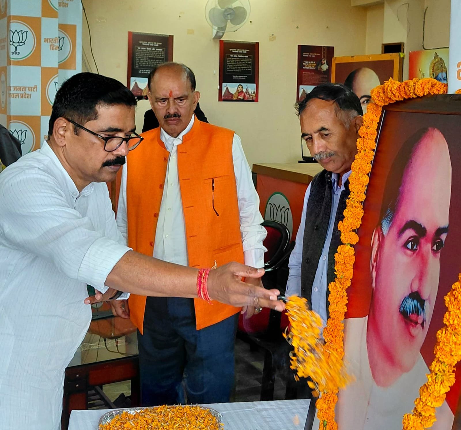भाजपा मुख्यालय दीपकमल चक्कर शिमला में शनिवार को डॉ. श्यामा प्रसाद मुखर्जी की 125वीं जयंती श्रद्धापूर्वक मनाई गई। कार्यक्रम में डॉ. मुखर्जी के राष्ट्रभक्ति, बलिदान और उनके विचारों को याद किया गया। मुख्य वक्ता वरिष्ठ भाजपा नेता गणेश दत्त ने सभा को संबोधित करते हुए कहा कि नेहरू के निर्णयों के चलते देश में दो विधान, दो निशान और दो संविधान जैसी विसंगतियां पैदा हुईं, जिनका मुखर विरोध डॉ. मुखर्जी ने किया। उन्होंने कहा कि भाजपा के हर कार्यकर्ता का संकल्प था – जहां हुए बलिदान मुखर्जी, वो कश्मीर हमारा है, जिसे प्रधानमंत्री नरेंद्र मोदी और गृह मंत्री अमित शाह ने पूरा कर दिखाया।