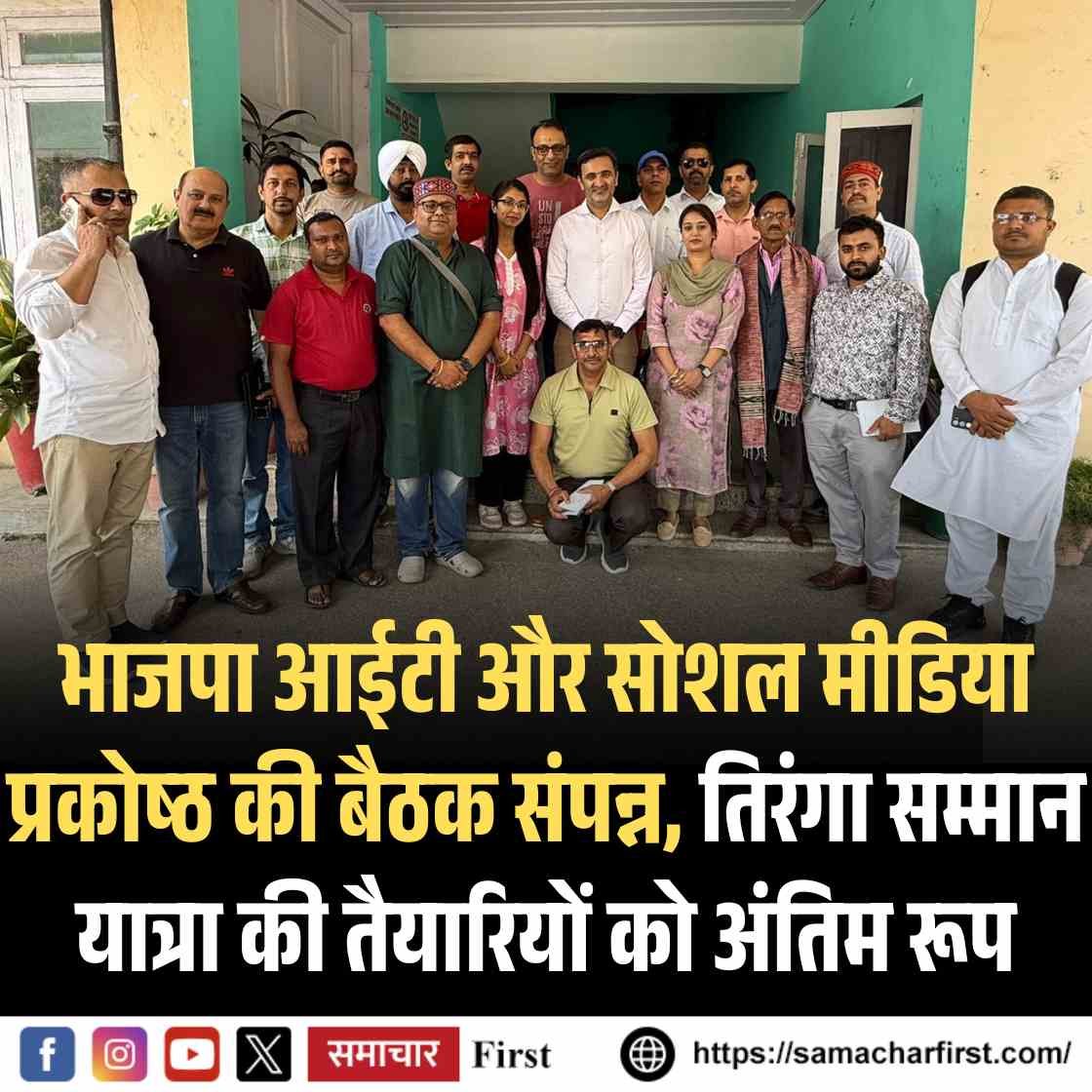 BJP Tiranga Yatra भारतीय जनता पार्टी आईटी एवं सोशल मीडिया प्रकोष्ठ की एक महत्वपूर्ण बैठक सोलन के पुराने लोक निर्माण विभाग विश्रामगृह में सम्पन्न हुई, जिसमें आगामी 2 जून को प्रस्तावित ‘तिरंगा सम्मान यात्रा’ की तैयारियों को अंतिम रूप दिया गया। इस बैठक की अध्यक्षता भाजपा प्रदेश अध्यक्ष डॉ. राजीव बिंदल ने की, जबकि आईटी एवं सोशल मीडिया प्रकोष्ठ के प्रदेश प्रभारी चेतन बरागटा विशेष रूप से उपस्थित रहे।