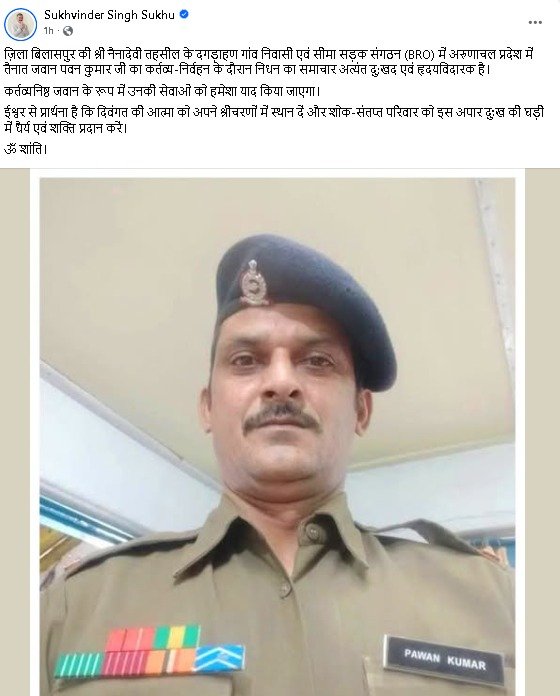 ➤ अरुणाचल प्रदेश में सड़क हादसे में जवान पवन कुमार का निधन