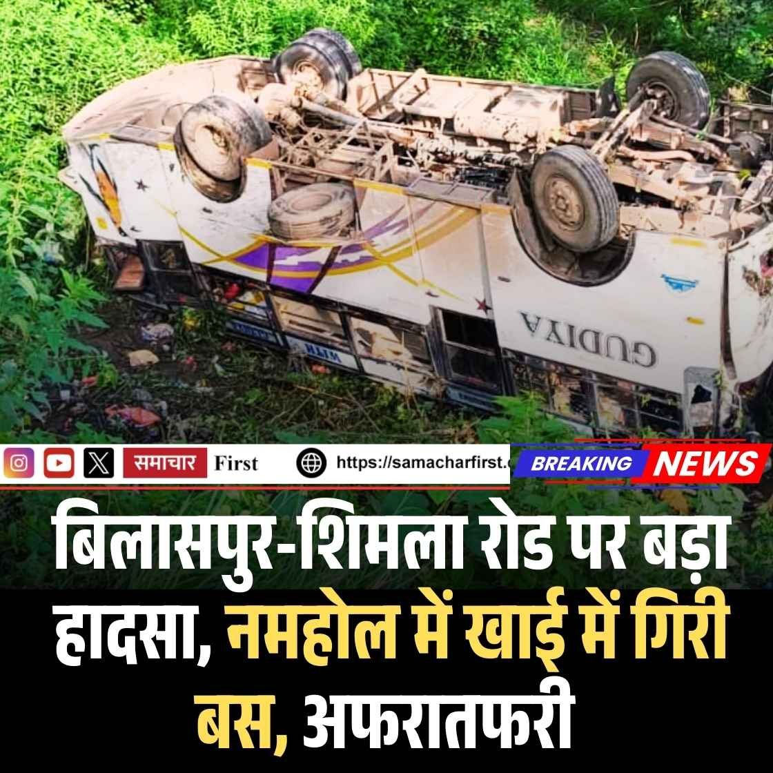 हिमाचल प्रदेश के बिलासपुर–शिमला राष्ट्रीय राजमार्ग पर एक बड़ा हादसा हुआ, जब एक निजी बस नमहोल के पास अनियंत्रित होकर गहरी खाई में गिर गई। हादसा शुक्रवार सुबह के समय हुआ जब बस शिमला की ओर जा रही थी।