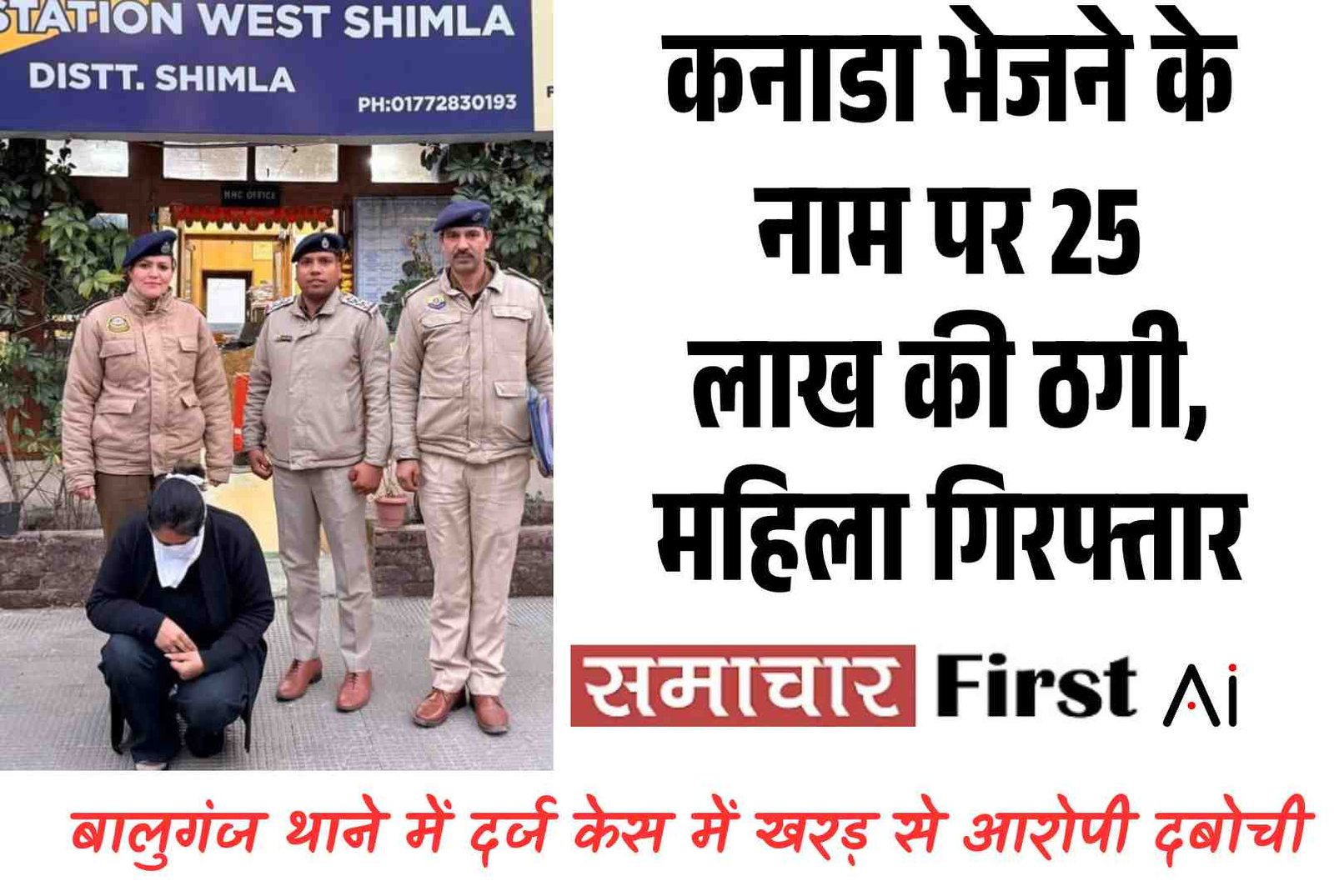 राजधानी शिमला में विदेश भेजने के नाम पर 25 लाख रुपये की ठगी का सनसनीखेज मामला सामने आया है। कबूतरबाजी और वीजा ठगी के आरोप में पुलिस ने एक महिला को गिरफ्तार किया है। शिकायत के अनुसार, पीड़ित परिवार की सदस्य भावना को कनाडा भेजने का झांसा देकर आरोपियों ने उससे लगभग ₹25,00,000 की राशि हड़प ली।