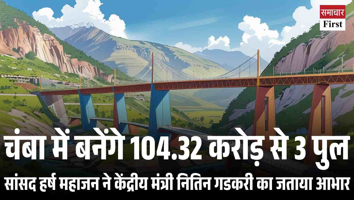 Chamba Development: हिमाचल प्रदेश के चंबा जिले को बड़ी सौगात मिली है। राज्यसभा सांसद हर्ष महाजन ने जानकारी दी कि राष्ट्रीय राजमार्ग-154ए पर 104.32 करोड़ रुपये की लागत से तीन नए पुलों के निर्माण को केंद्र सरकार की मंजूरी मिल गई है। उन्होंने इसके लिए केंद्रीय सड़क परिवहन एवं राजमार्ग मंत्री नितिन गडकरी का आभार जताया।