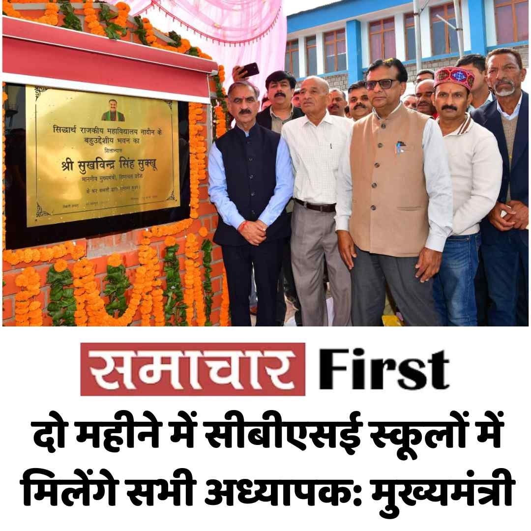 हमीरपुर। हिमाचल प्रदेश के मुख्यमंत्री सुखविंद्र सिंह सुक्खू ने कहा कि राज्य सरकार शिक्षा व्यवस्था को मजबूत बनाने के लिए लगातार कदम उठा रही है। उन्होंने बताया कि प्रदेश में 140 स्कूलों को सीबीएसई पाठ्यक्रम आधारित बनाया जा रहा है और अगले दो महीनों के भीतर इन सभी स्कूलों में आवश्यक अध्यापक उपलब्ध करा दिए जाएंगे। इन स्कूलों के विद्यार्थियों के लिए अलग ड्रेस कोड भी निर्धारित किया जाएगा।