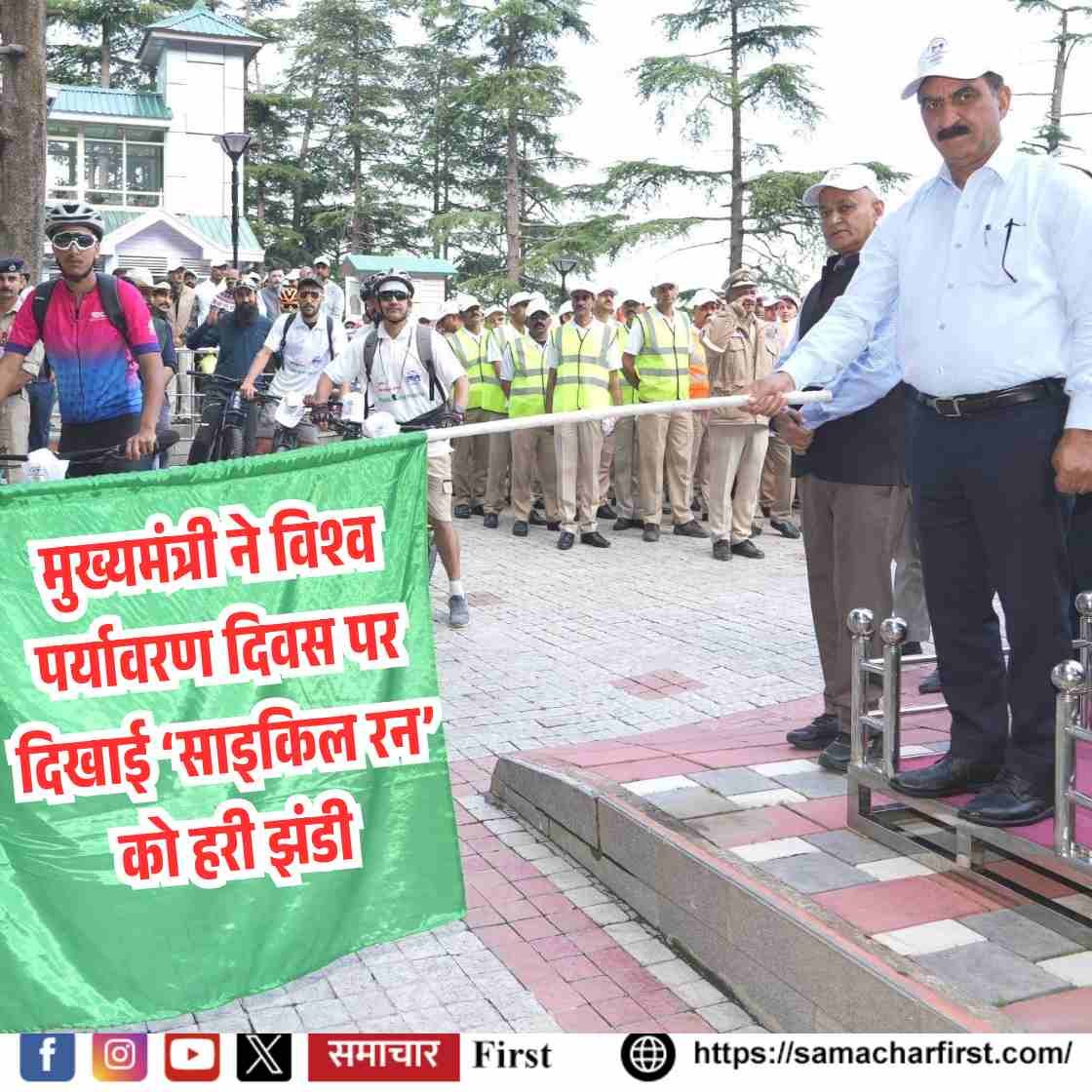 शिमला, पराक्रम चंंद: पर्यावरण दिवस के अवसर पर मुख्यमंत्री सुखविंद्र सिंह सुक्खू ने मंगलवार को ओक ओवर, शिमला से ‘प्लास्टिक प्रदूषण को समाप्त करने’ के संदेश के साथ आयोजित साइकिल रन को हरी झंडी दिखाकर रवाना किया। इस अवसर पर उन्होंने प्रदेश को प्लास्टिक न्यूट्रल बनाने के लिए 2030 तक के लक्ष्य के तहत ‘प्लास्टिक न्यूट्रल हिमाचल-2030 जागरूकता अभियान’ और ‘स्वच्छ शिमला अभियान’ का विधिवत शुभारंभ भी किया।