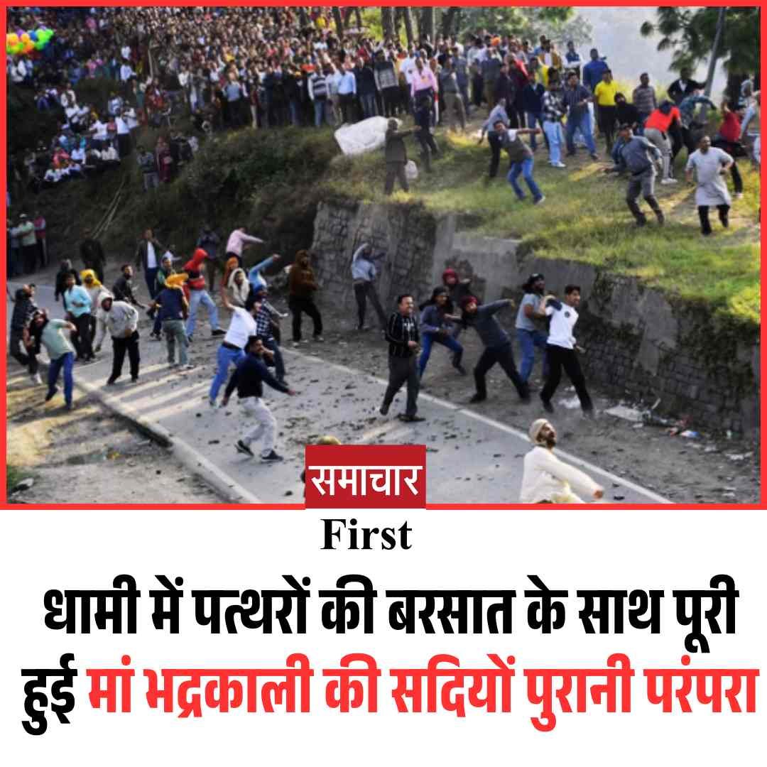 राजधानी शिमला से करीब 35 किलोमीटर दूर धामी में दिवाली के दूसरे दिन सदियों पुरानी पत्थर के खेल की परंपरा को एक बार फिर निभाया गया। यह परंपरा देव संस्कृति और मां भद्रकाली की पूजा से जुड़ी है, जिसमें दो टोलियों — जमोगी और कटेड़ू — के लोग एक-दूसरे पर पत्थर बरसाकर परंपरा निभाते हैं।