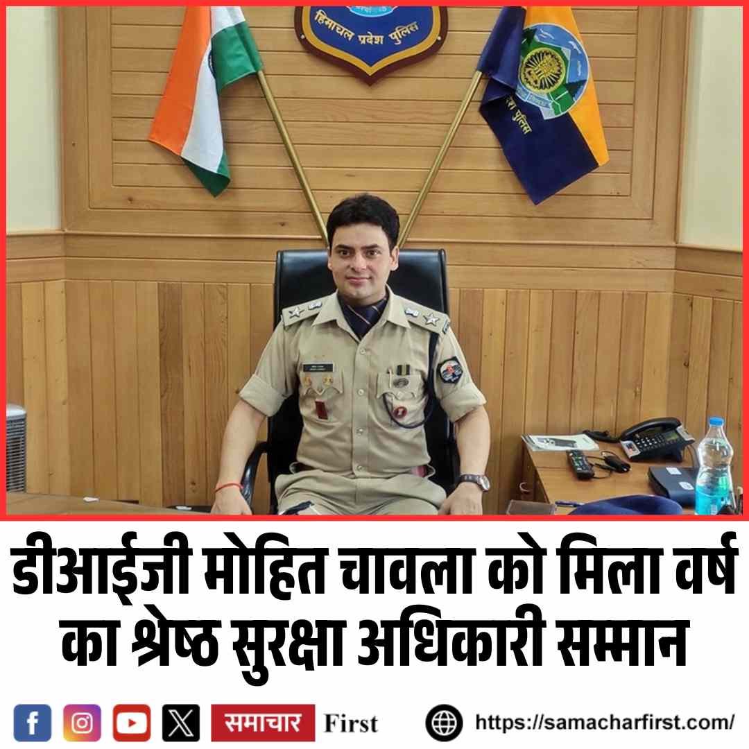 हिमाचल प्रदेश पुलिस में उप महानिरीक्षक (डीआईजी) साइबर अपराध के रूप में सेवाएं दे रहे मोहित चावला को वर्ष का श्रेष्ठ सुरक्षा अधिकारी (Best Security Officer of the Year) सम्मान से नवाजा गया है। यह सम्मान उन्हें देश के प्रमुख सुरक्षा विशेषज्ञों, वरिष्ठ अधिकारियों और डिजिटल सुरक्षा क्षेत्र से जुड़े प्रतिनिधियों की मौजूदगी में प्रदान किया गया।