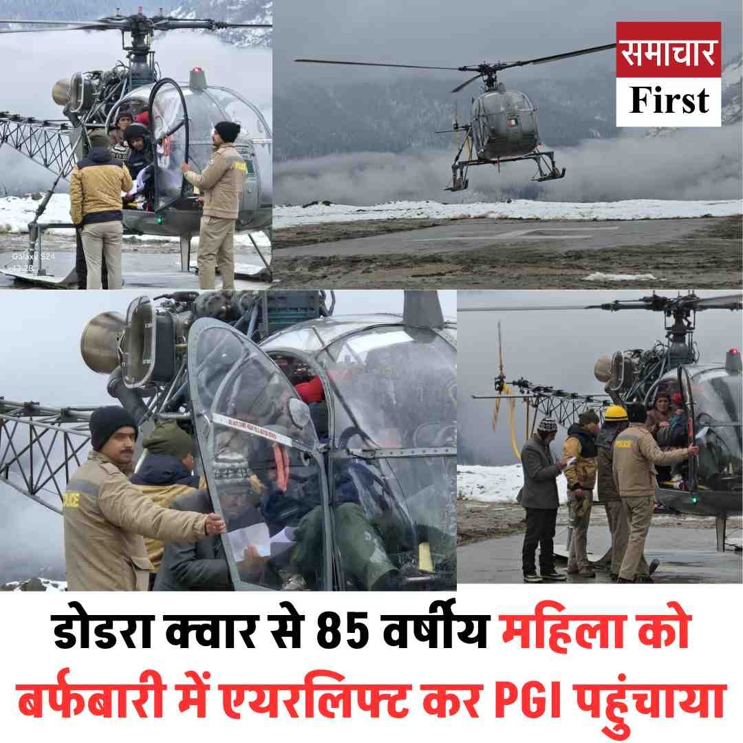 ➤ डोडरा क्वार से 85 वर्षीय महिला को बर्फबारी के बीच एयरलिफ्ट कर PGI पहुंचाया