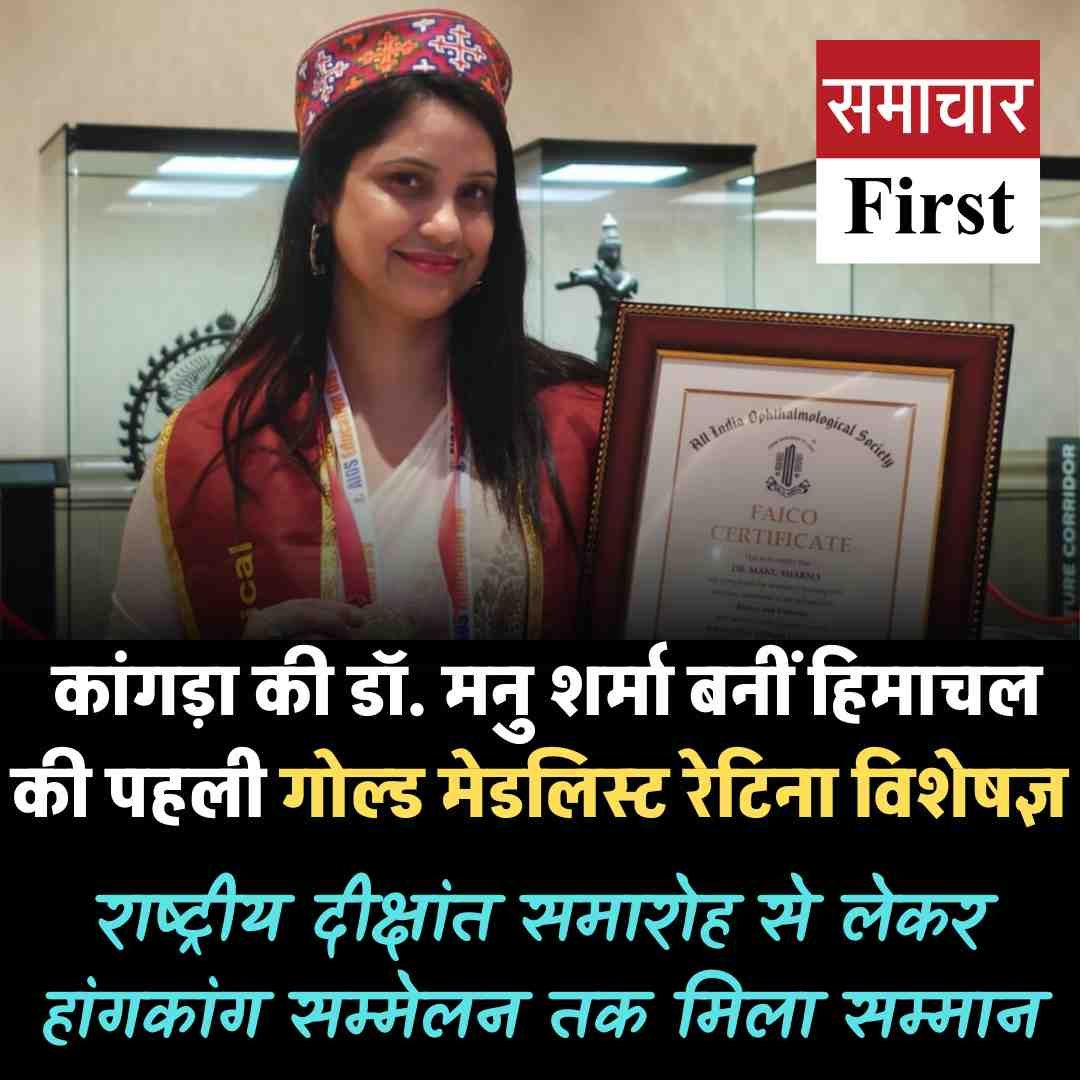 कांगड़ा की डॉ. मनु शर्मा बनीं हिमाचल की पहली गोल्ड मेडलिस्ट रेटिना विशेषज्ञ, राष्ट्रीय दीक्षांत समारोह से लेकर हांगकांग सम्मेलन तक मिला सम्मान