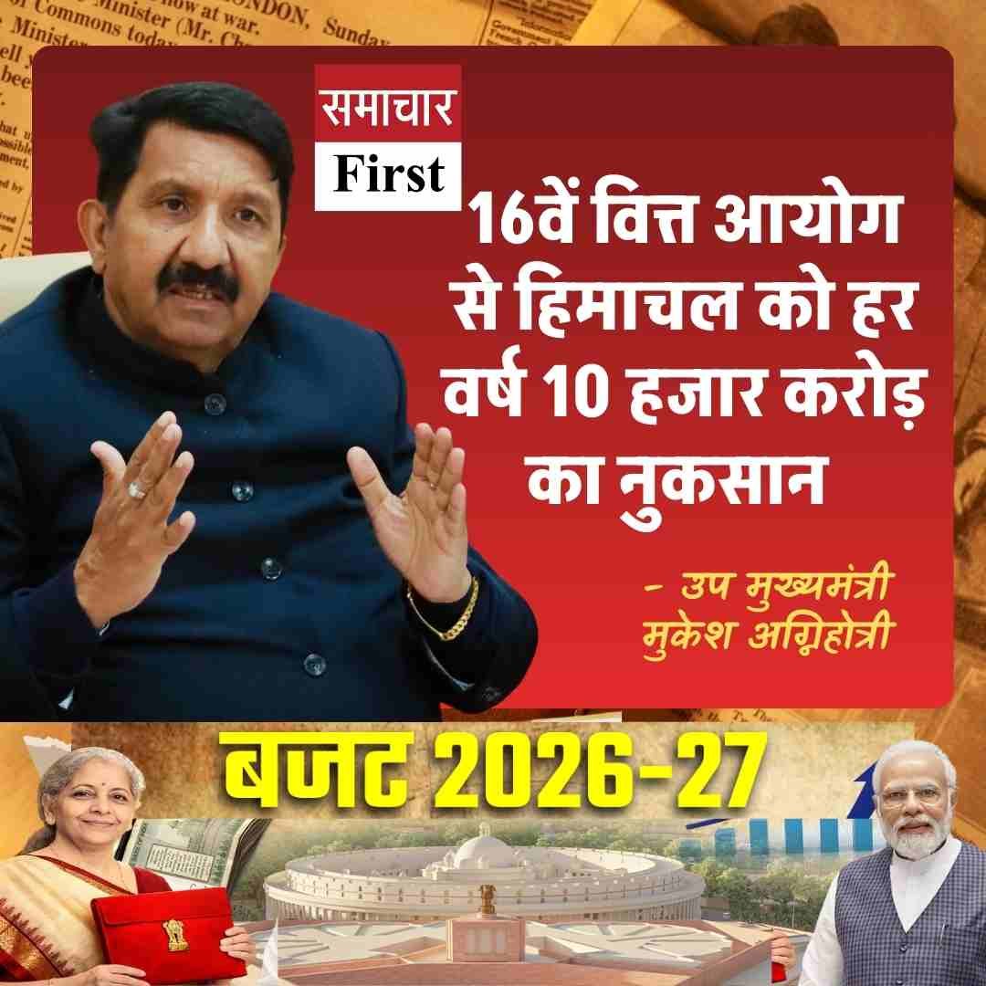 उप मुख्यमंत्री मुकेश अग्निहोत्री ने केंद्रीय बजट और 16वें वित्त आयोग (FC-16) की सिफारिशों पर कड़ी प्रतिक्रिया देते हुए दावा किया कि इन फैसलों से हिमाचल प्रदेश को हर वर्ष लगभग ₹10,000 करोड़ का वित्तीय नुकसान होगा। उनके अनुसार यह दीर्घकालिक असर है, जो प्रदेश की वित्तीय संरचना को कमजोर करेगा।