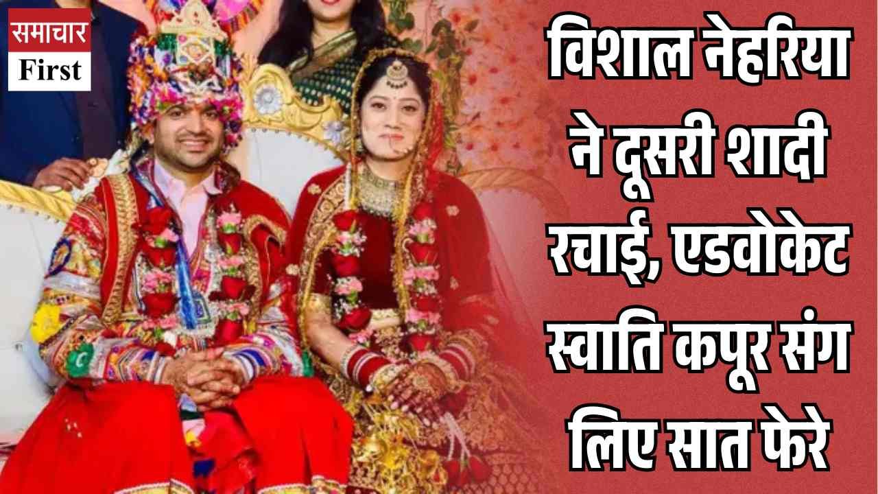 Vishal Nehria second marriage: धर्मशाला के पूर्व भाजपा विधायक विशाल नेहरिया ने एडवोकेट स्वाति कपूर के साथ दूसरी शादी कर ली है। शादी गद्दी पारंपरिक रीति-रिवाजों के तहत सादगी से संपन्न हुई, जिसमें परिवार के सदस्य और करीबी मित्र शामिल हुए। इस मौके पर विशाल ने अपने समर्थकों और रिश्तेदारों के लिए कांगड़ी धाम का आयोजन भी किया, जिसमें बड़ी संख्या में लोगों के साथ भाजपा के कई विधायक और पूर्व मंत्री भी शामिल हुए।