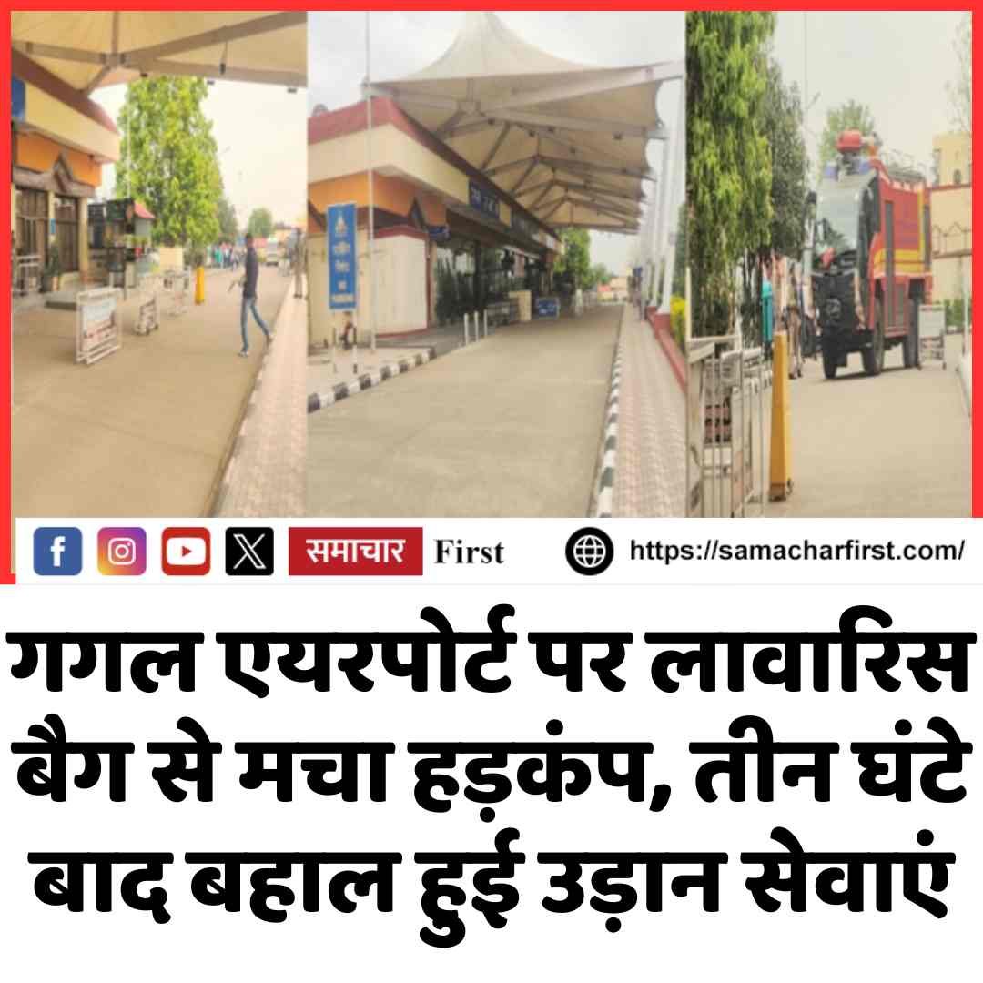 हिमाचल प्रदेश के कांगड़ा जिले स्थित गगल एयरपोर्ट पर शनिवार सुबह एक लावारिस बैग मिलने से हड़कंप मच गया। सुबह करीब 8:30 बजे एयरपोर्ट के वॉशरूम में नीले रंग का बैग मिलने के बाद सुरक्षा एजेंसियां तुरंत अलर्ट हो गईं। एहतियात के तौर पर पूरे एयरपोर्ट परिसर को खाली करा दिया गया और कुछ समय के लिए उड़ान सेवाएं भी प्रभावित रहीं।