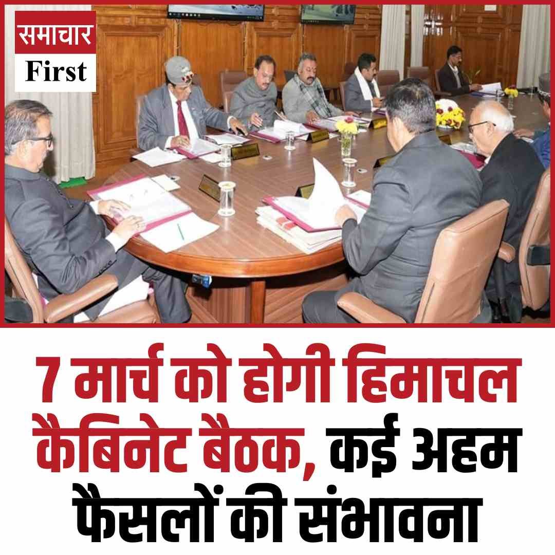7 मार्च को होगी हिमाचल कैबिनेट बैठक, कई अहम फैसलों की संभावना