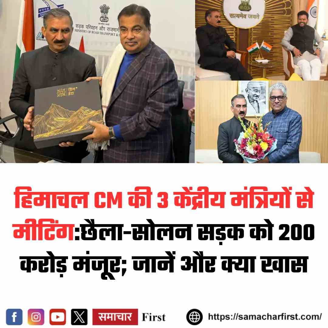हिमाचल के मुख्यमंत्री सुखविंदर सिंह सुक्खू ने दिल्ली में केंद्रीय सड़क परिवहन मंत्री नितिन गडकरी, नागर विमानन मंत्री राम मोहन नायडू किंजरापु और वन, पर्यावरण मंत्री भूपेंद्र यादव से अलग-अलग बैठकें कीं। बैठकों में सड़क, हवाई संपर्क और हरित आवरण से जुड़े अहम मुद्दे प्रमुखता से रखे गए।