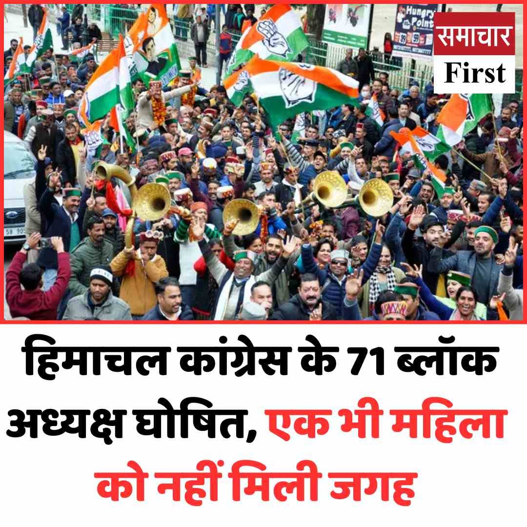 हिमाचल कांग्रेस के 71 ब्लॉक अध्यक्ष घोषित, एक भी महिला को नहीं मिली जगह