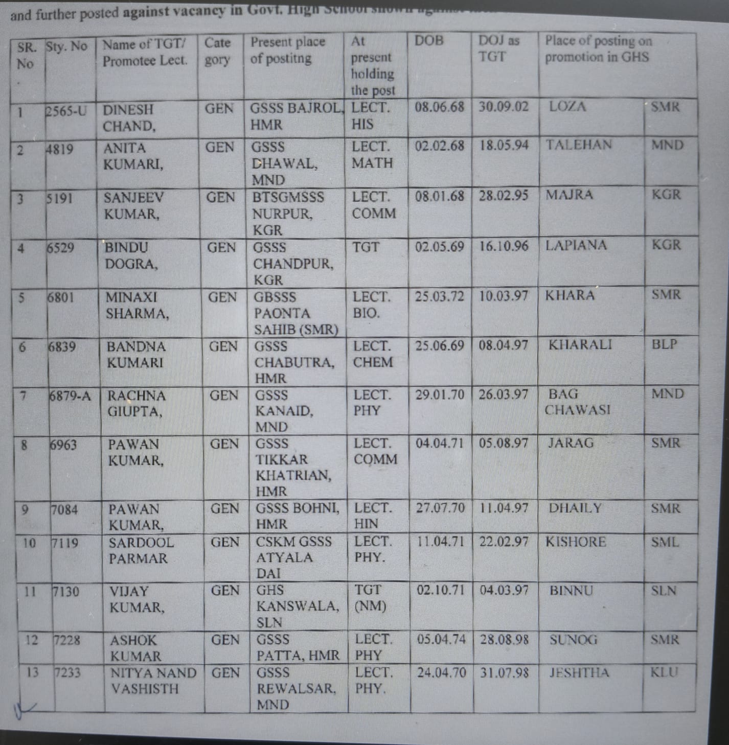 हिमाचल प्रदेश शिक्षा विभाग ने बड़ा प्रशासनिक निर्णय लेते हुए 235 प्रशिक्षित स्नातक अध्यापकों (TGT) और प्रमोटी लेक्चरर्स को हेडमास्टर पद पर पदोन्नत कर दिया है। यह फैसला डिपार्टमेंटल प्रमोशन कमेटी (DPC) की सिफारिशों के बाद लिया गया, जिसके आदेश डायरेक्टर स्कूल एजुकेशन ने जारी कर दिए हैं।