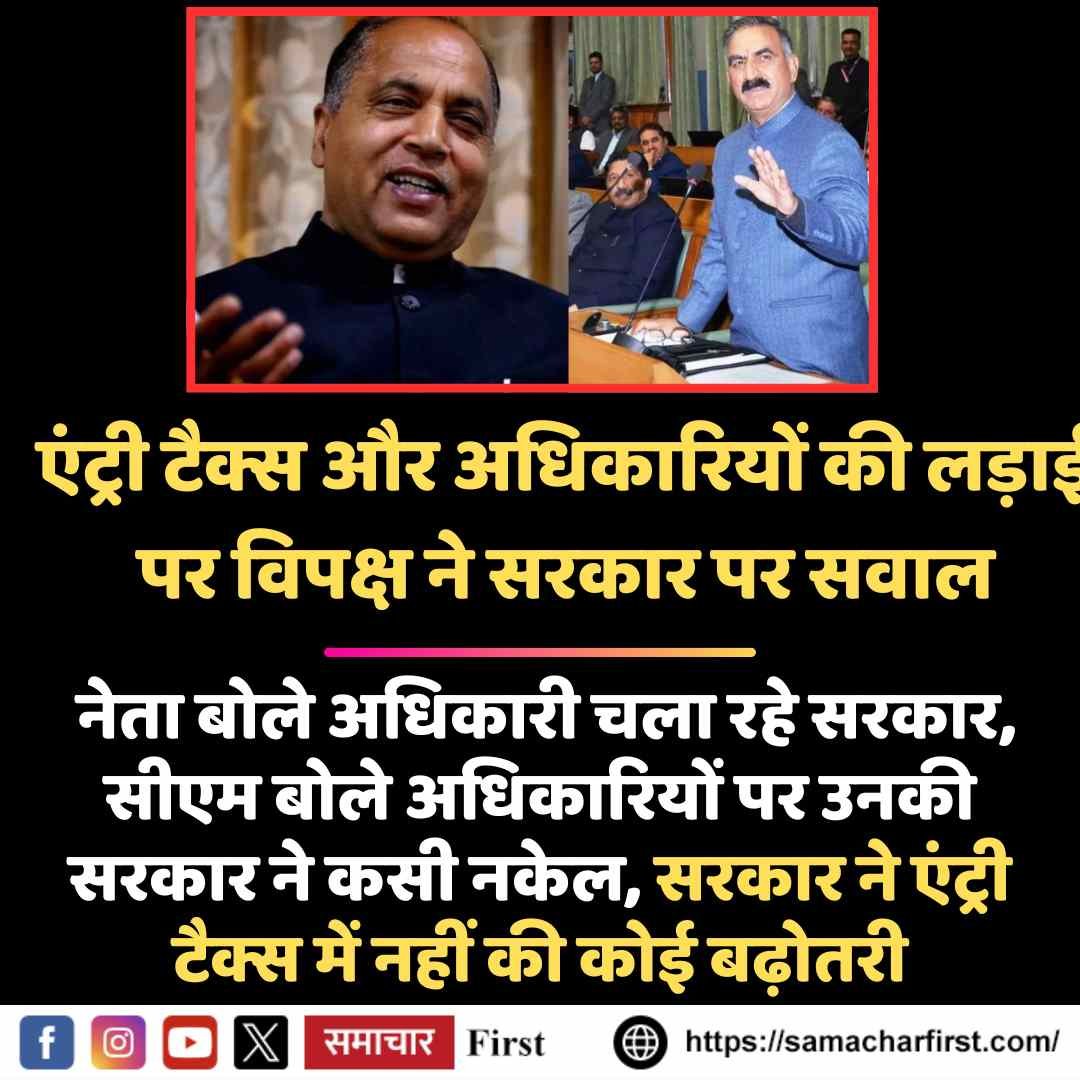 एंट्री टैक्स और अधिकारियों की लड़ाई पर विपक्ष ने सरकार पर सवाल, नेता बोले अधिकारी चला रहे सरकार, सीएम बोले अधिकारियों पर उनकी सरकार ने कसी नकेल, सरकार ने एंट्री टैक्स में नहीं की कोई बढ़ोतरी