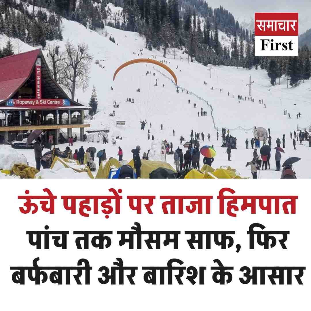 ऊंचे पहाड़ों पर ताजा हिमपात, पांचत तक मौसम साफ, फ‍िर बर्फबारी और बारिश के आसार
