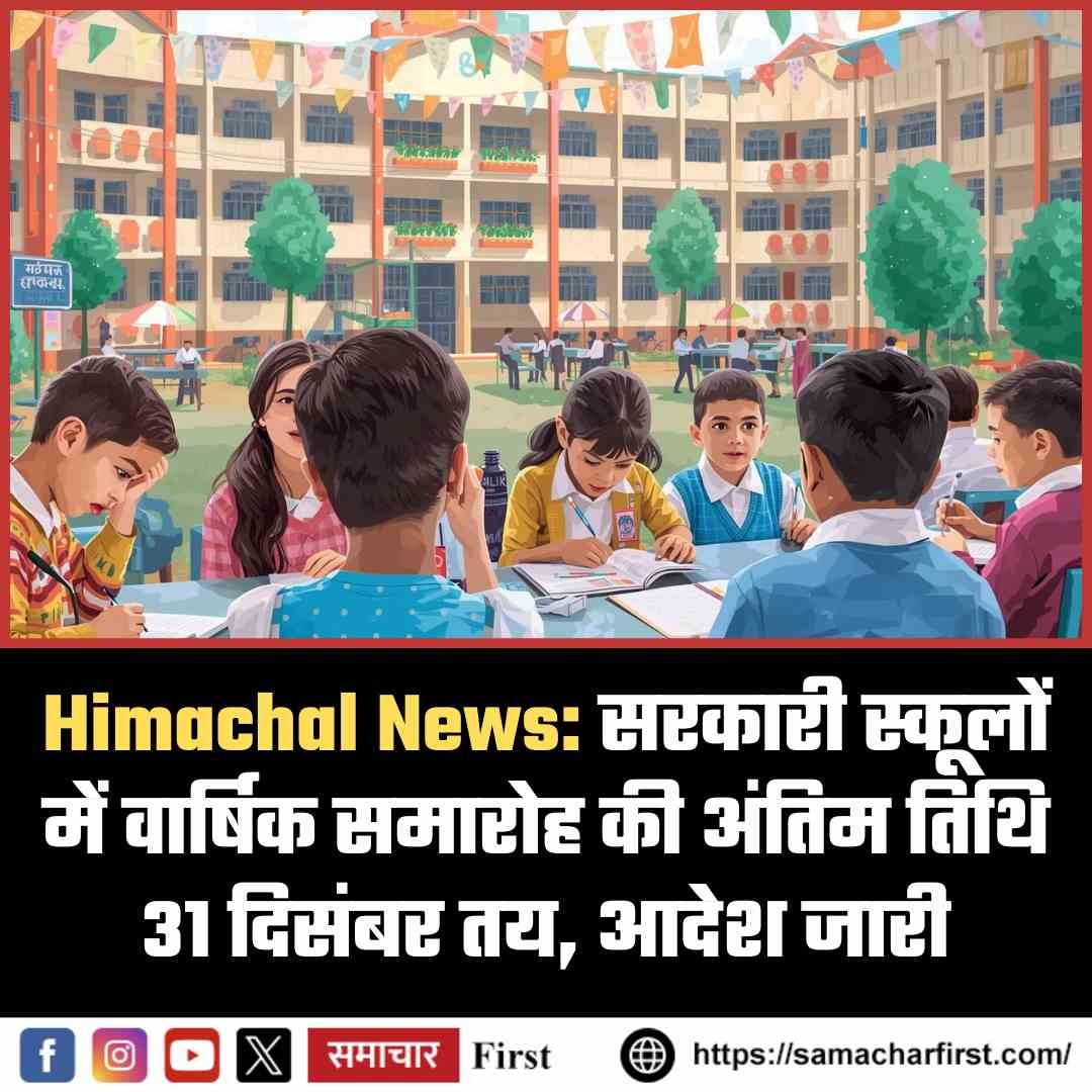 हिमाचल प्रदेश के सरकारी स्कूलों में चालू शैक्षणिक सत्र के लिए वार्षिक समारोह आयोजित करने की अंतिम तिथि 31 दिसंबर 2025 निर्धारित कर दी गई है। शिक्षा विभाग ने स्पष्ट किया है कि इसके बाद किसी भी स्थिति में समय-सीमा में विस्तार नहीं किया जाएगा।