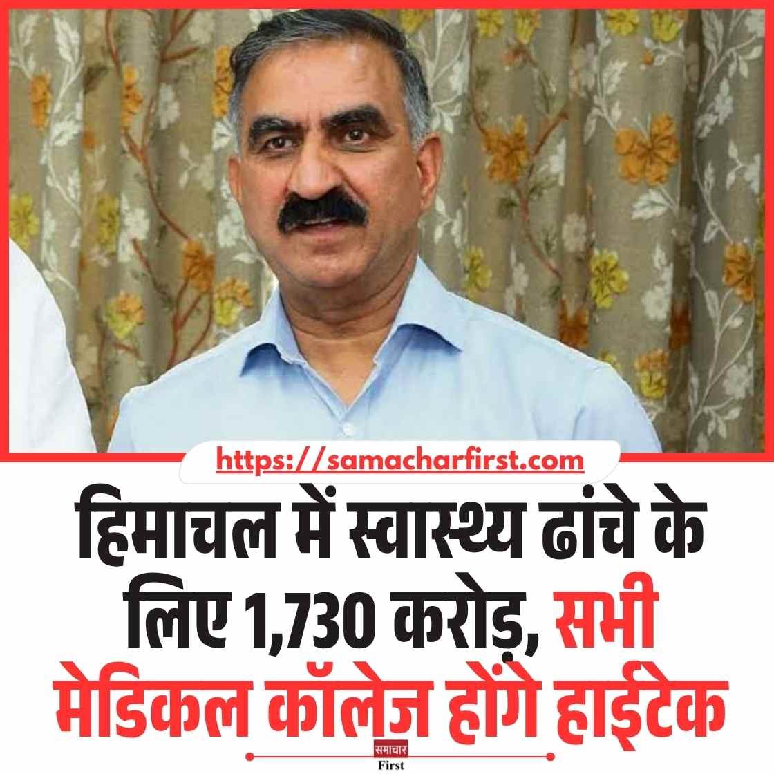 हिमाचल प्रदेश सरकार ने स्वास्थ्य ढांचे के आधुनिकीकरण के लिए बड़ा कदम उठाया है। मुख्यमंत्री सुखविंदर सिंह सुक्खू की अध्यक्षता में हुई स्वास्थ्य समीक्षा बैठक में निर्णय लिया गया कि प्रदेश के स्वास्थ्य संस्थानों में 1,730 करोड़ रुपये की लागत से आधुनिक चिकित्सा उपकरण स्थापित किए जाएंगे। साथ ही 491 नए पदों को सृजित करने की मंजूरी दी गई है जिससे विशेषज्ञ डॉक्टरों, नर्सों और पैरामेडिकल स्टाफ की तैनाती सुनिश्चित की जाएगी।