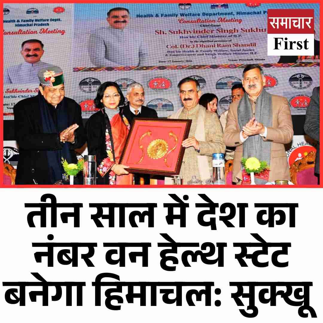➤ तीन साल में हिमाचल बनेगा देश का नंबर वन हेल्थ स्टेट