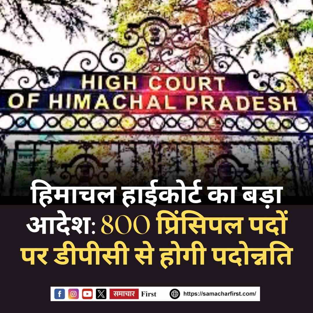 हिमाचल प्रदेश हाईकोर्ट ने राज्य सरकार को बड़ा आदेश देते हुए स्कूल प्रिंसिपल के 800 पदों को डीपीसी (Departmental Promotion Committee) के माध्यम से भरने का निर्देश दिया है। अदालत ने कहा है कि 31 दिसंबर को सेवानिवृत्त होने वाले लेक्चरों को 23 दिसंबर तक पदोन्नत किया जाए और आदेशों की पूर्ण अनुपालना 26 दिसंबर तक हर हाल में की जाए।