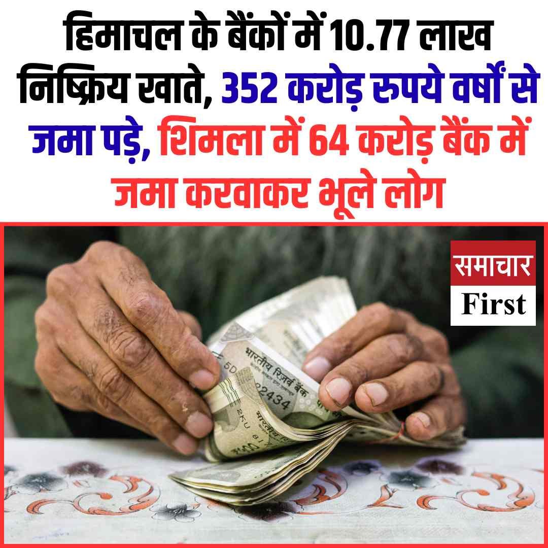 ➤ हिमाचल में 10.77 लाख निष्क्रिय बैंक खाते, जिनमें 352 करोड़ रुपये बरसों से बिना दावा पड़े