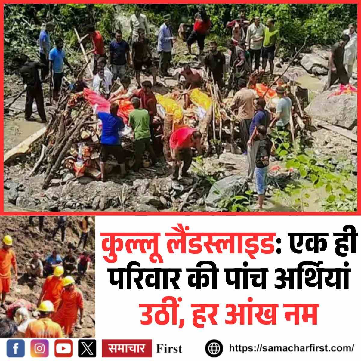 हिमाचल प्रदेश के कुल्लू जिले के निरमंड क्षेत्र में लैंडस्लाइड ने एक ही परिवार की खुशियों को पलभर में मातम में बदल दिया। बीते दिन हुए इस हादसे में परिवार के आठ सदस्य मलबे में दब गए थे, जिनमें से पांच लोगों की मौत हो गई। मृतकों में परिवार की महिला, बेटा-बहू और दो मासूम बच्चे शामिल हैं। आज शमानी खड्ड में इन सभी का अंतिम संस्कार किया गया, जहां एक ही आंगन से पांच अर्थियां उठीं और पूरे इलाके में शोक की लहर छा गई।