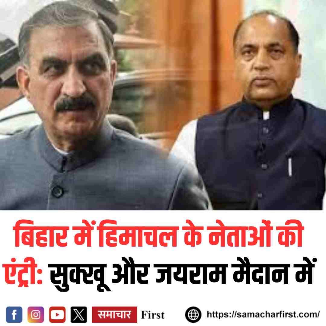 बिहार विधानसभा चुनाव में अब हिमाचली नेताओं की एंट्री होने जा रही है। कांग्रेस हाईकमान ने हिमाचल प्रदेश के मुख्यमंत्री सुखविंद्र सिंह सुक्खू को बिहार चुनाव के लिए स्टार प्रचारक नियुक्त किया है। नवंबर के पहले सप्ताह में सुक्खू बिहार जाएंगे और कांग्रेस प्रत्याशियों के समर्थन में रोड शो व जनसभाएं करेंगे।