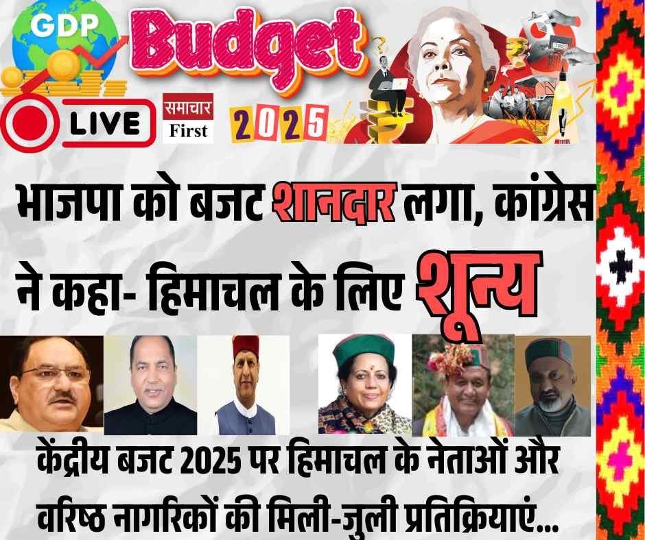 Union Budget 2025 Himachal reactions: केंद्रीय वित्त मंत्री निर्मला सीतारमण ने शनिवार को लोकसभा में केंद्रीय बजट 2025 पेश किया। बजट पर हिमाचल प्रदेश के नेताओं और आम जनता की विभिन्न प्रतिक्रियाएं सामने आई हैं। कांग्रेस नेताओं ने जहां बजट को नकार दिया है। वहीं भाजपाइयों ने बजट की प्रशंसा के पुल बांधे हैं।…………