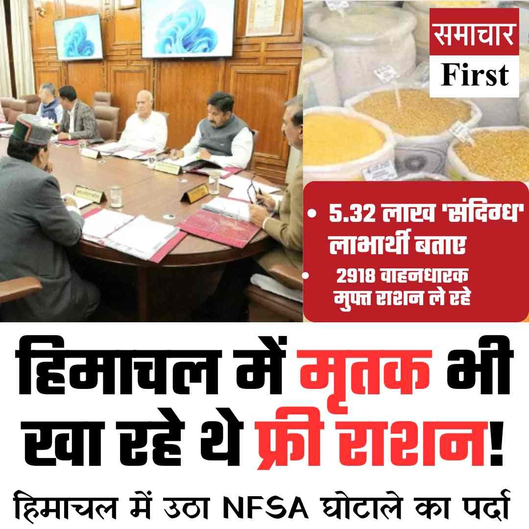 शिमला। हिमाचल प्रदेश में राष्ट्रीय खाद्य सुरक्षा अधिनियम (NFSA) के तहत मिलने वाले मुफ्त व सस्ते राशन की पात्रता सूची में व्यापक अनियमितताएँ उजागर हुई हैं। केंद्र सरकार द्वारा भेजी गयी सूची के अनुसार प्रदेश में कुल 28.24 लाख लाभार्थियों में से प्रारम्भिक तौर पर 5,71,625 लोगों को संदिग्ध करार दिया गया था। बाद में संशोधित आकलन के बाद अब लगभग 5.32 लाख लाभार्थियों को सस्पेक्टेड श्रेणी में रखा गया है और उनका सत्यापन तेज़ी से चल रहा है।