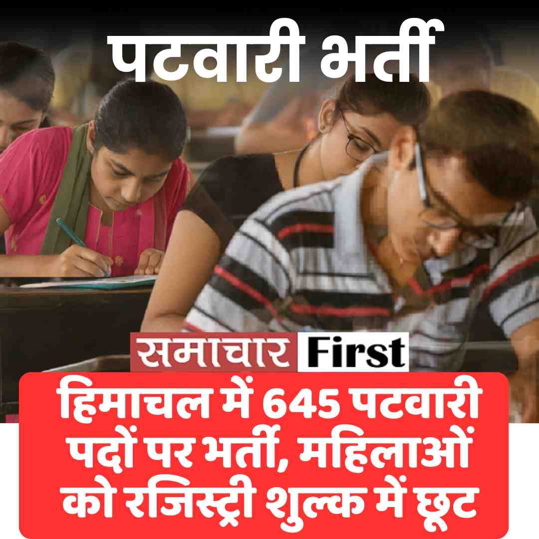 हिमाचल में 645 पटवारी पदों पर भर्ती, महिलाओं को रजिस्ट्री शुल्क में छूट