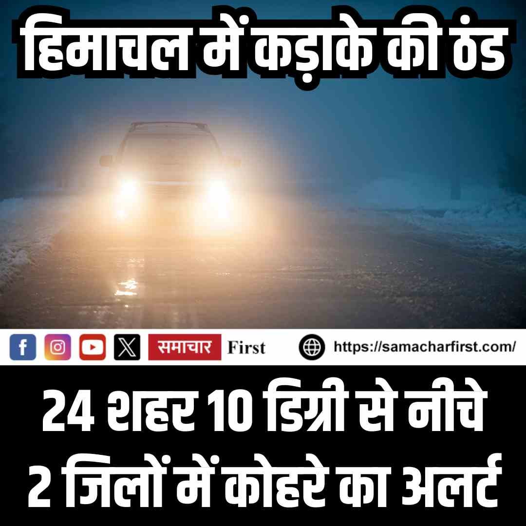 मौसम विज्ञान केंद्र शिमला ने मंडी की बल्ह घाटी और बिलासपुर के भाखड़ा बांध क्षेत्र में कोहरे का यलो अलर्ट जारी किया है। सुबह 10 बजे तक घना कोहरा पड़ने का अनुमान है, जिससे विजिबिलिटी 200 मीटर तक घट सकती है। लोगों को सतर्क रहने की सलाह दी गई है।