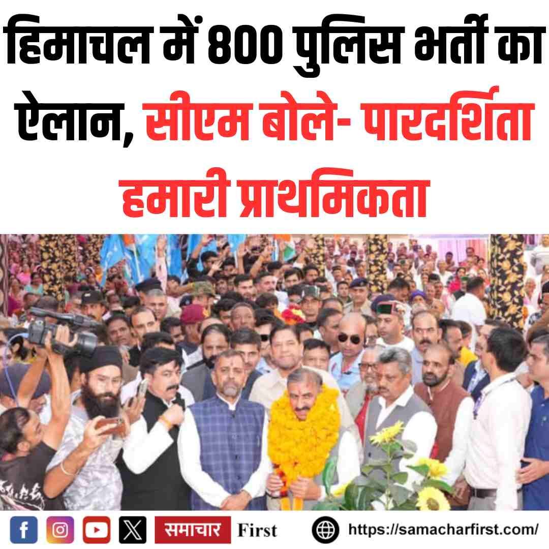 हिमाचल में 800 पुलिस भर्ती का ऐलान, सीएम बोले- पारदर्शिता हमारी प्राथमिकता