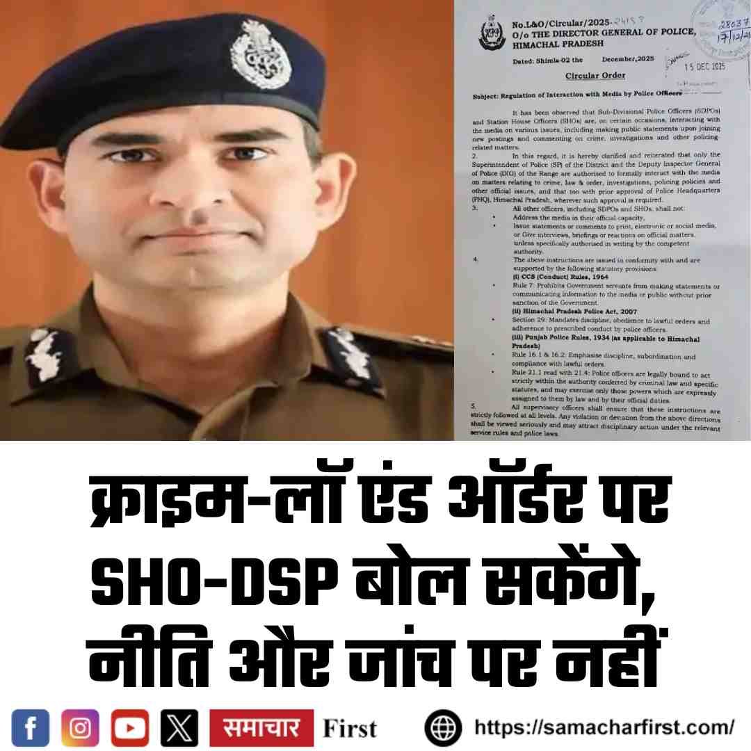 हिमाचल पुलिस की मीडिया से संवाद को लेकर जारी नई मानक संचालन प्रक्रिया (SOP) पर उठे विवाद के बीच DGP अशोक तिवारी ने स्थिति स्पष्ट की है। दैनिक भास्कर डिजिटल से बातचीत में उन्होंने कहा कि सब-डिवीजनल पुलिस अधिकारी (SDPO) और थाना प्रभारी (SHO) अब क्राइम और लॉ एंड ऑर्डर से जुड़े मामलों पर मीडिया से बात कर सकेंगे।