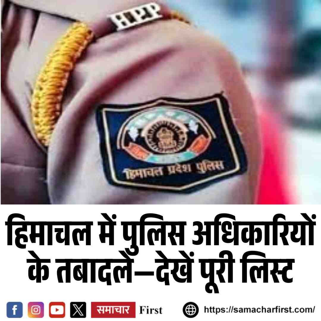 हिमाचल प्रदेश सरकार ने पुलिस विभाग में प्रशासनिक फेरबदल करते हुए दो अधिकारियों के तबादलों को मंजूरी दी है, जबकि पहले जारी किए गए तीन अधिकारियों के तबादला आदेशों को निरस्त कर दिया गया है। प्रदेश में चल रही प्रशासनिक पुनर्संरचना के तहत यह निर्णय लिया गया है।