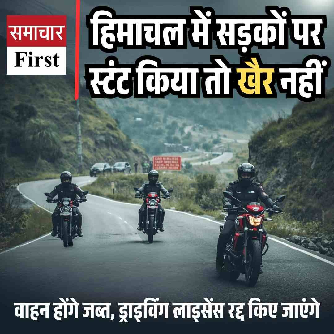 हिमाचल प्रदेश में अब सड़क पर स्टंटबाजी करने वालों की खैर नहीं है। पुलिस मुख्यालय ने इस पर सख्त रुख अपनाते हुए सभी जिला पुलिस अधीक्षकों को निर्देश जारी किए हैं कि ऐसे वाहनों को मौके पर जब्त किया जाए और चालकों के ड्राइविंग लाइसेंस रद्द करने के लिए परिवहन विभाग को अनुशंसा भेजी जाए।
