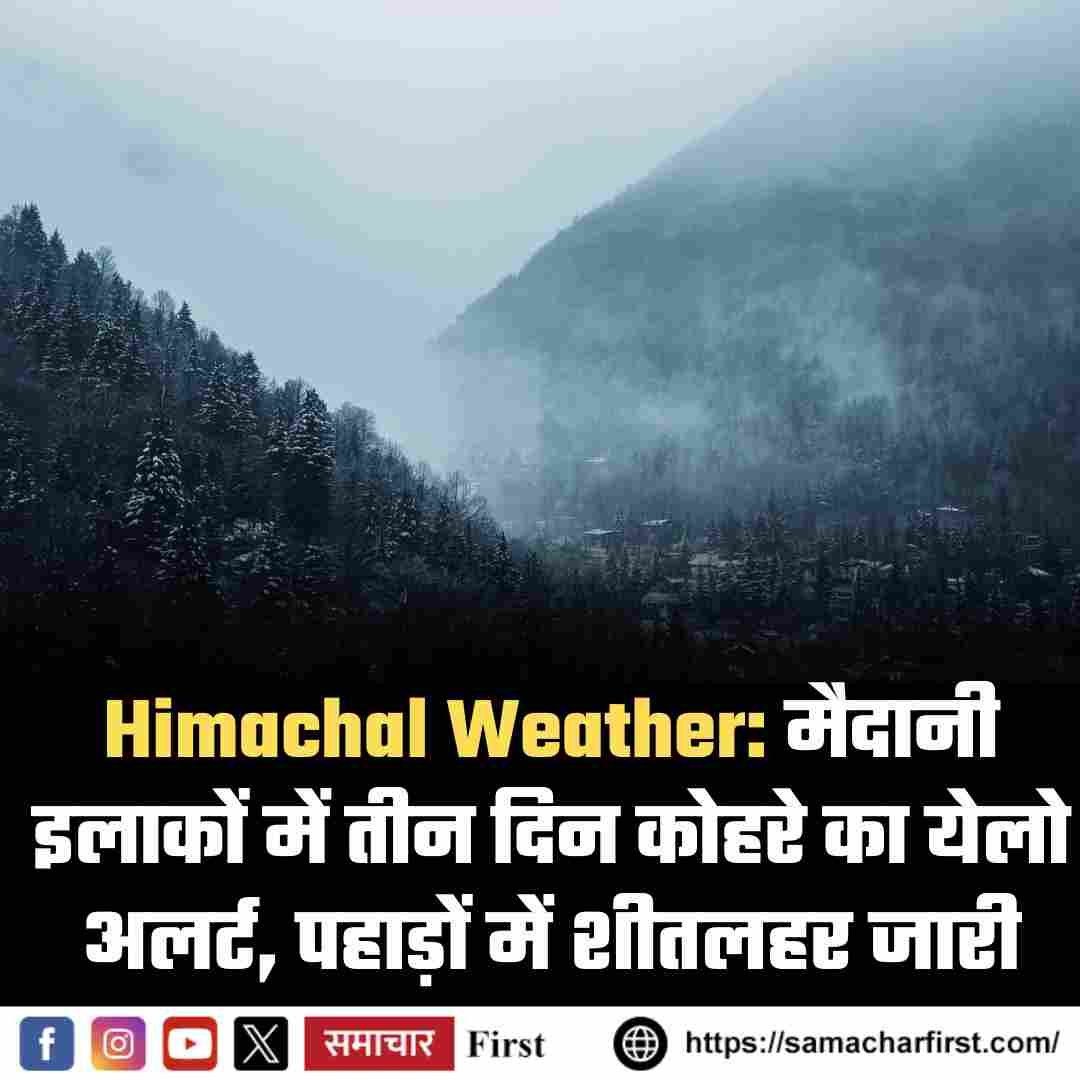हिमाचल प्रदेश के मैदानी और कम ऊंचाई वाले कई इलाकों में अगले तीन दिनों तक घने कोहरे का येलो अलर्ट जारी किया गया है। पिछले 24 घंटों के दौरान बिलासपुर क्षेत्र में घना कोहरा छाए रहने से विजिबिलिटी घटकर 50 मीटर तक रह गई, जबकि मंडी में हल्का कोहरा दर्ज किया गया।