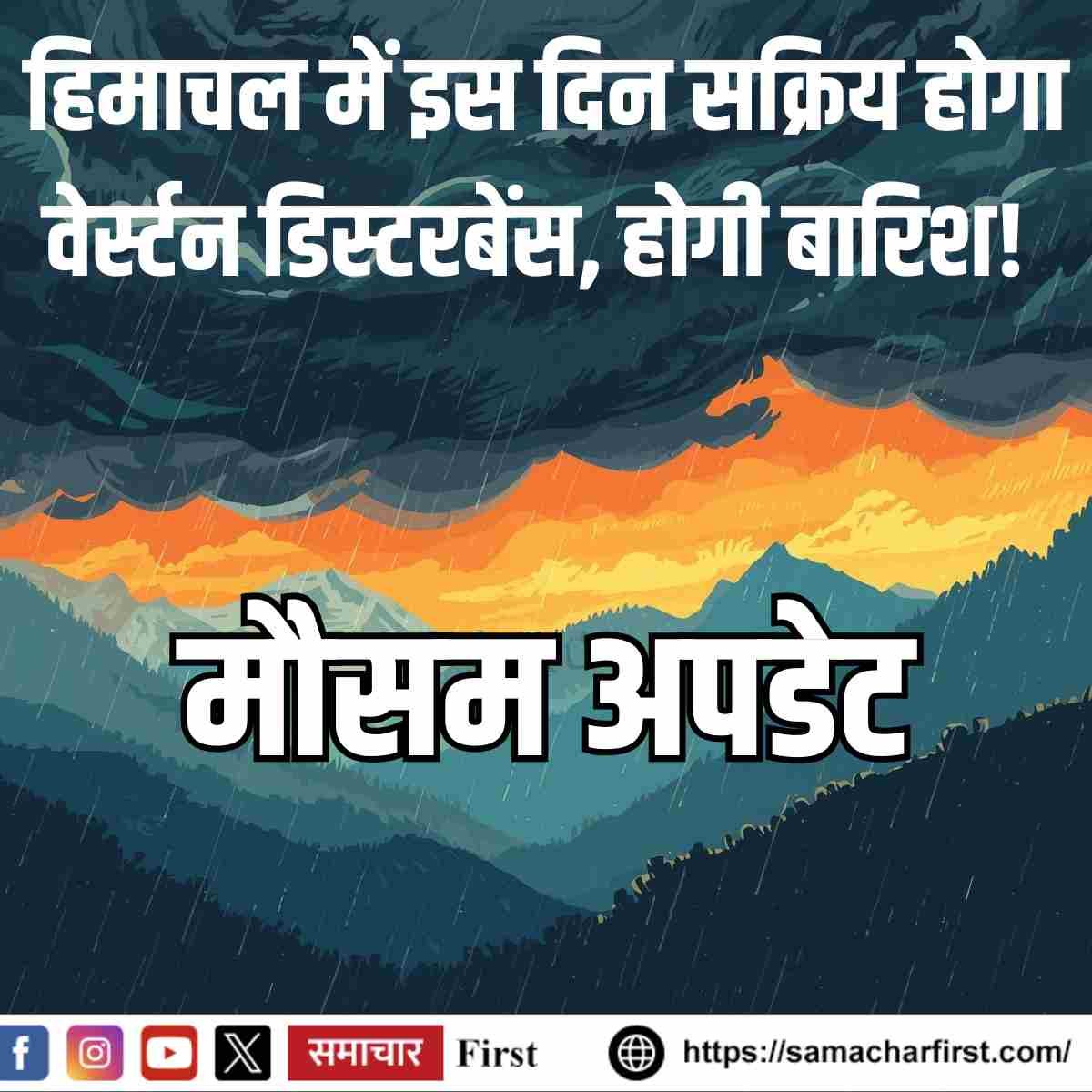 हिमाचल में इस दिन सक्रिय होगा वेर्स्‍टन डिस्‍टरबेंस, होगी बारिश! मौसम अपडेट