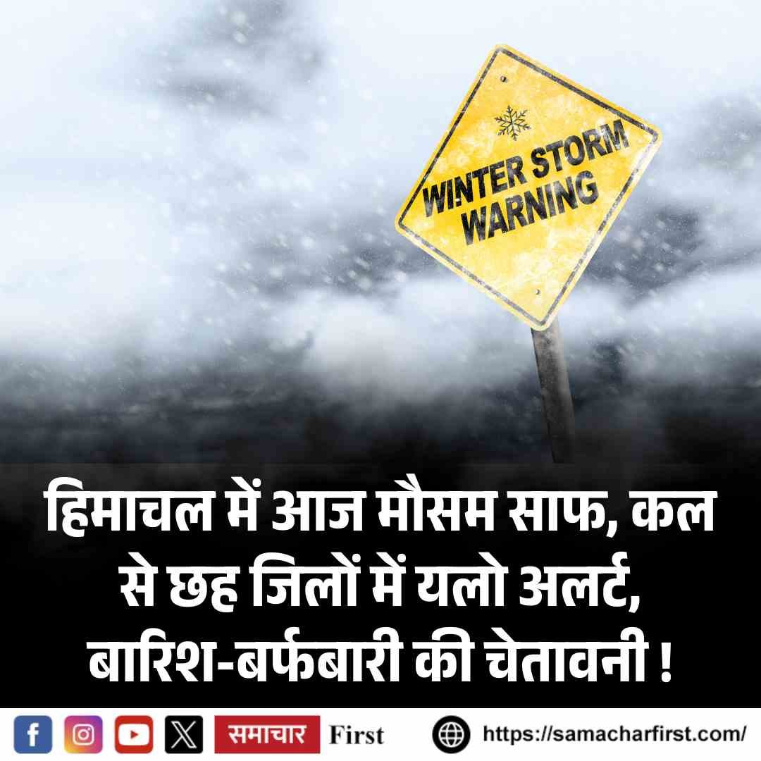 हिमाचल में आज मौसम साफ, कल से छह जिलों में यलो अलर्ट, बारिश-बर्फबारी की चेतावनी!