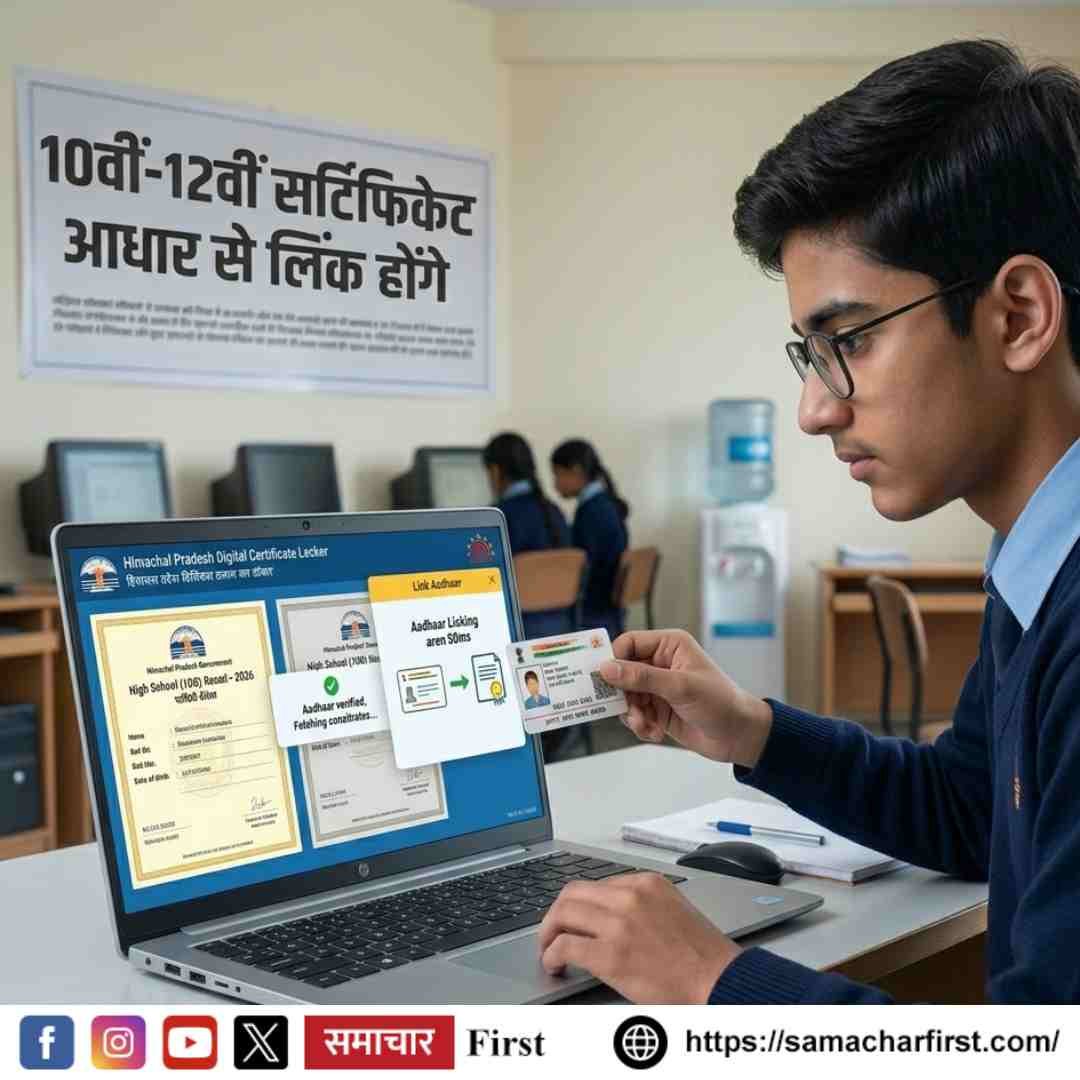 हिमाचल प्रदेश स्कूल शिक्षा बोर्ड जल्द ही एक बड़ी डिजिटल पहल शुरू करने जा रहा है, जिसके तहत 10वीं और 12वीं कक्षा के सर्टिफिकेट को आधार कार्ड से लिंक किया जाएगा। इस नई व्यवस्था का उद्देश्य प्रमाण पत्रों की सुरक्षा बढ़ाना और छात्रों को सुविधाजनक सेवाएं उपलब्ध कराना है।